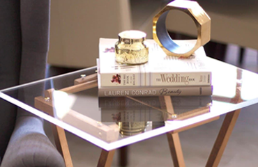Check out this elegant TV tray table and imagine this same finish on your vanity, side table, coffee table or any table top around your home. I've seen regular tv trays but this acrylic one takes the cake. I just love how it adds that modern clean finish to the surrounding area! It just pops! This is made using a 3/8th piece of clear acrylic mounted to an existing tray table using either an acrylic adhesive or pre-drilled screw holes depending on the material of your base. Another idea is using acrylic as a protective tabletop cover for existing furniture. Its as easy as measuring your dimensions, inputting them into our system, and letting us take care of the rest. To get started, click on our cut-to-size page located below.