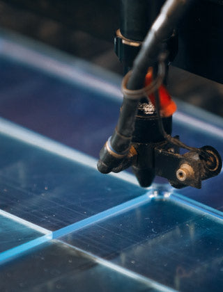 Our matte acrylic P95 sheets feature a matte finish on one side and a glossy finish on the other side. The “P95” refers to the matte texture pattern which gives it a blurred or frosted effect on the clear sheet, and the black matte sheet looks similar to a chalkboard.